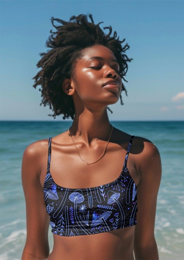 Bikini tipo top con tiras para cruzar y atar en espalda. Confeccionado en lycra premium con protección UV y completamente forrado.